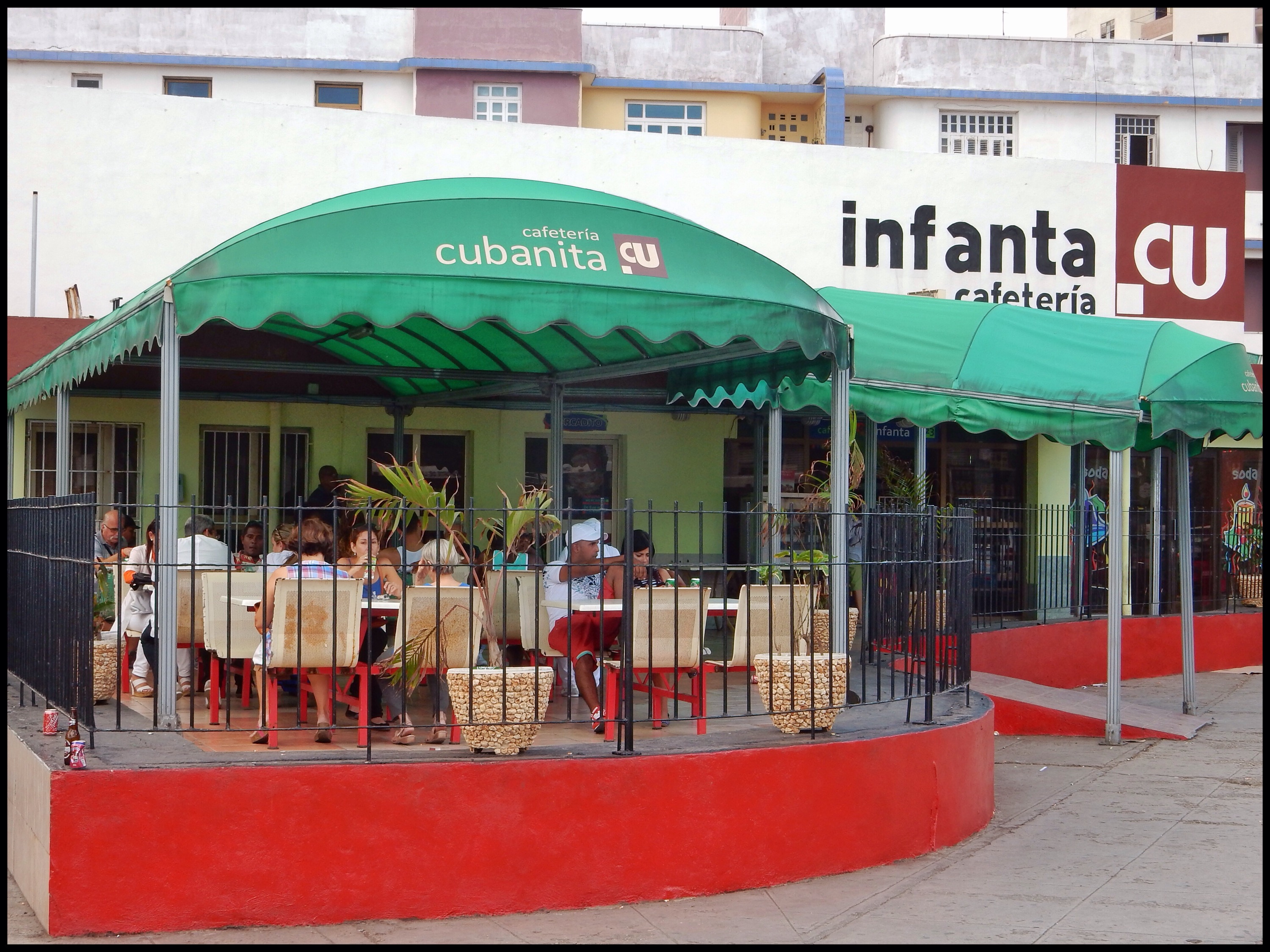 The last two nights I managed to get out of the apartment for a bit… But the furthest I can go and still be within safe sprinting distance of a decent toilet is Cafe Bim Bom at the end of my street on the next block. Despite the name “cafe”, it doesn’t actually serve any coffee, only beer, rum and soft drinks. I saw a whole lot of people sucking on these little 200 ml tetra packs and I thought, “How cute, they’re all drinking juice”…. Turns out it’s rum. The other side of the road is Hustler Central and Cafe Bim Bom is where they come to drink. Across the road on the Malecon Sea Wall (the world’s longest sofa) again, is the same scene but feels slightly less desperate.