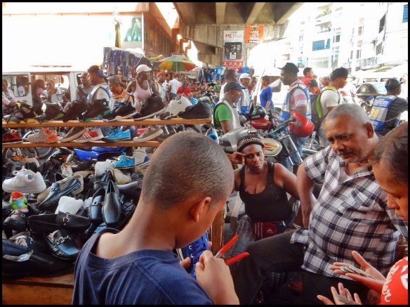 Anyway what the Zone lacks in energy, the Dominicans certainly make up for it in other parts. I walked north up Avenida Duarte to Ramon Caceres metro station and then took the train and went and checked out a couple of high end malls, Sambil and Agora. Avenida Duarte is the main commerce route for low income earners. The entire road is wall to wall shops, stalls of all kinds and people. To describe the scene as “chaotic” would be a complete understatement. There’s no way photos or words can do it justice… It has to be experienced. The photos I’m posting here are of Avenida Duarte… As I said before, they really don’t capture the atmosphere. One thing I can’t get past noticing all the time, and Avenida Duarte is a prime example, is how dirty the city is and how much trash there is in the streets. From the cities that I’ve visited in my time, Santo Domingo is second only to Manila in terms of dirtiness. No-one seems to use bins and no-one seems concerned either… I was carrying my trash around with me but when I bought something and my hands were full to receive the goods and change I too hurled my trash into the street. It seemed really weird to so brazenly litter in front of hundreds of people and no-one blinks an eye.